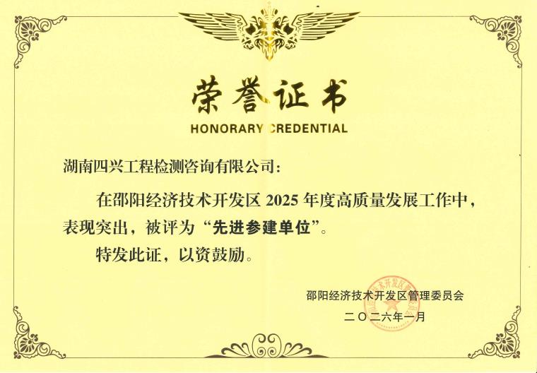 邵阳讯(通讯员 谭丽苹)1月19日,,,邵阳经开区2026年经济事情聚会顺遂召开,,,公司四兴公司依附在园区工程检测领域的突出孝顺,,,被授予“2025年度高质量生长‘先进参建单位’”称呼,,,是参会单位中唯逐一家获评的第三方检测单位,,,这是对四兴公司专业实力、效劳质量与责任继续的高度认可。。。。。